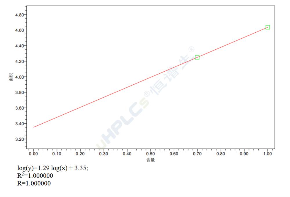 兩點外標雙對數(shù)計算茯苓樣品中β-(1→3)-葡聚糖含量為5.976ug。