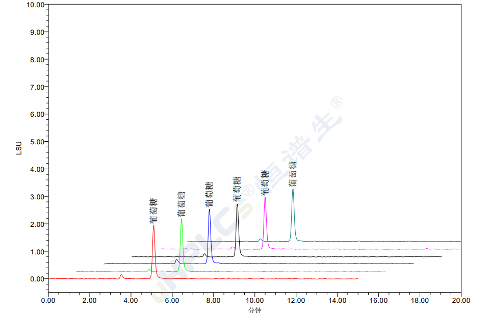 (1)樣品穩(wěn)定性測試:連續(xù)六針5μL?葡萄糖樣品,重復性?RSD?為?1.29%,符合藥典要求。