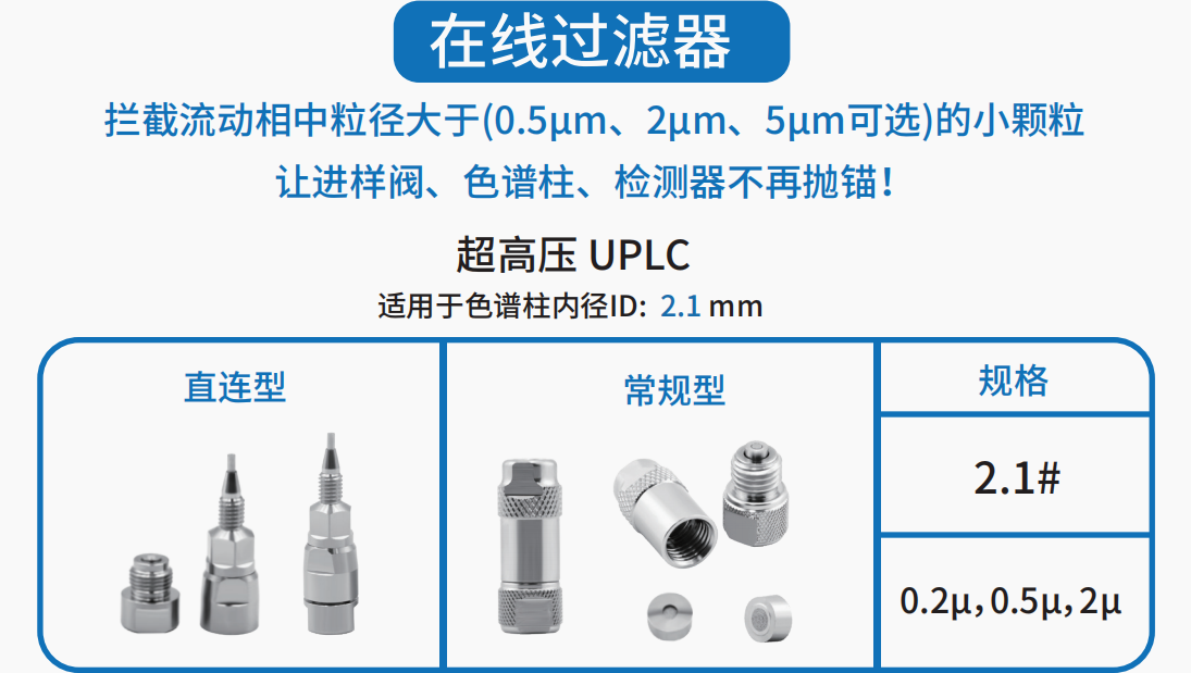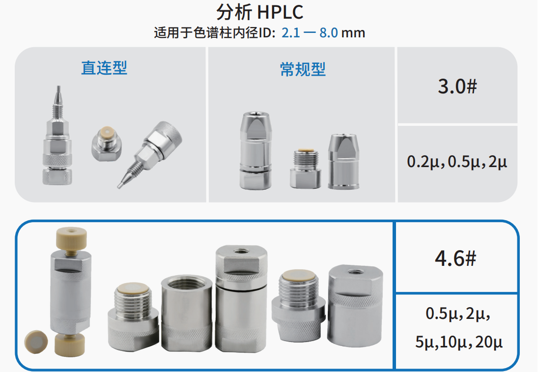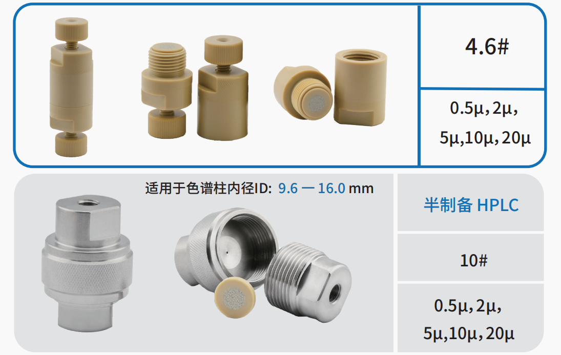 色譜柱入口過(guò)濾器直接安裝在色譜柱前,用于去除來(lái)自進(jìn)樣系統(tǒng)和樣品的顆粒