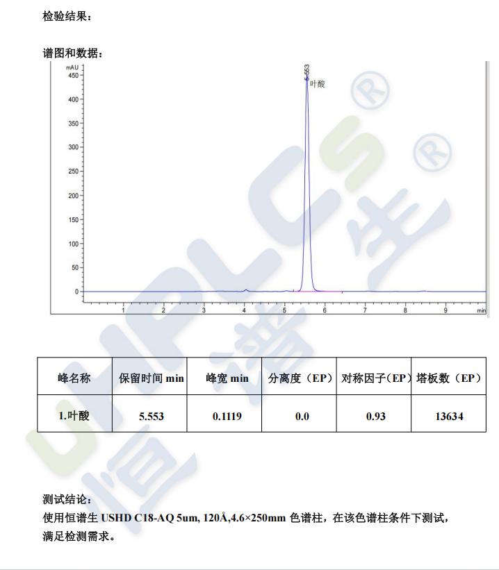 葉酸檢測(cè)專用分析柱4.6*250mm粒徑5μm孔徑120?